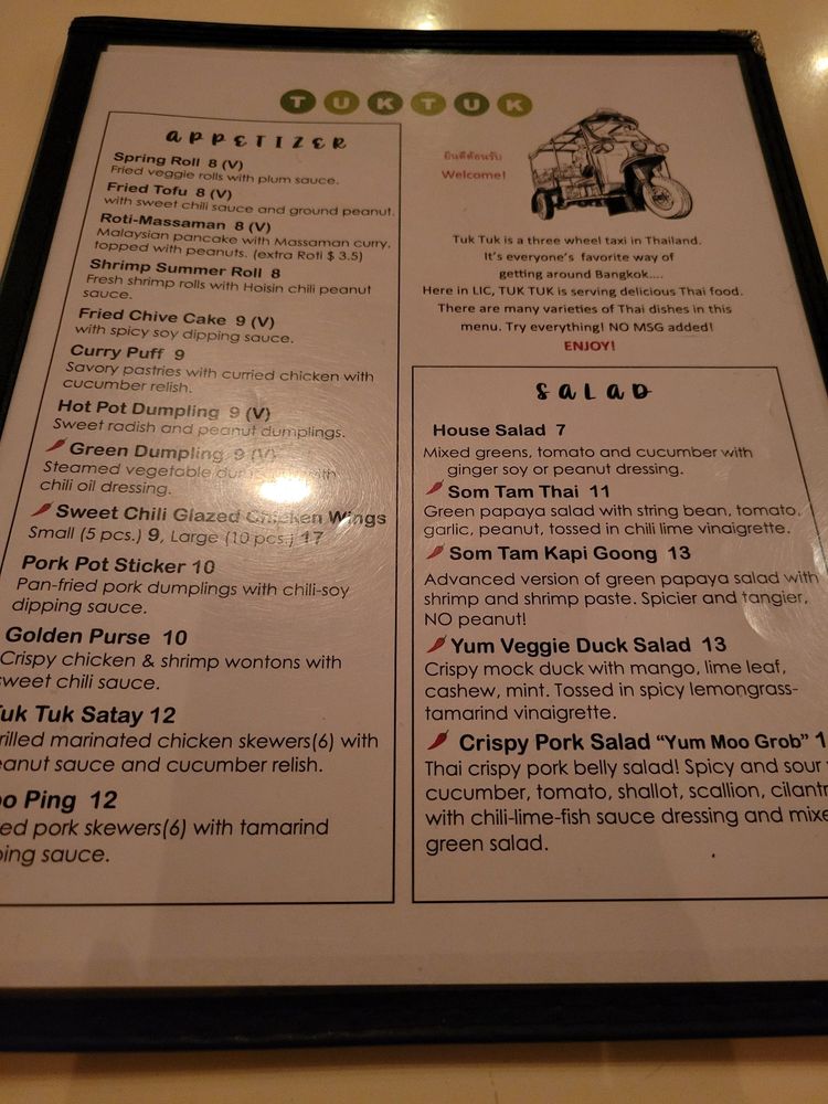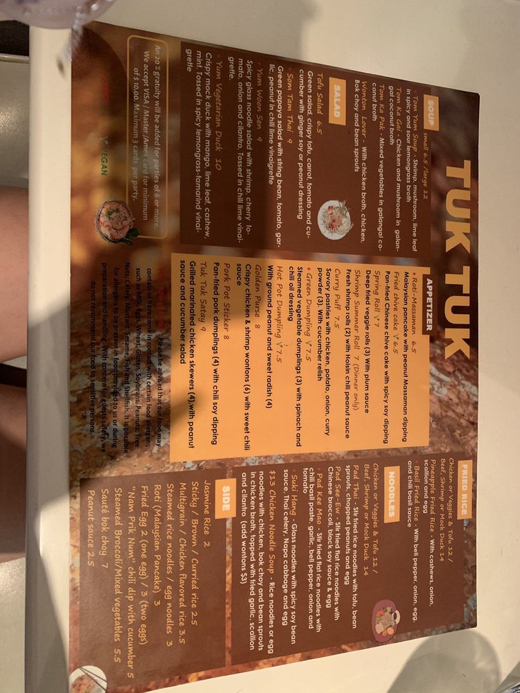 What sets Tuk Tuk apart is not just its authentic offerings but also its warm and welcoming ambiance—perfect for gatherings with friends or family. The efficient service guarantees quick turnaround times, allowing you to enjoy your meal without feeling rushed. With affordable prices and generous portions, this is a go-to spot for satisfying your Thai food cravings. Plus, the restaurant's commitment to inclusivity—like wheelchair accessibility and vegan options—makes it a great choice for everyone. Indulge in Tuk Tuk's vibrant atmosphere and flavorful dishes; it’s a casual experience that leaves you wanting more.